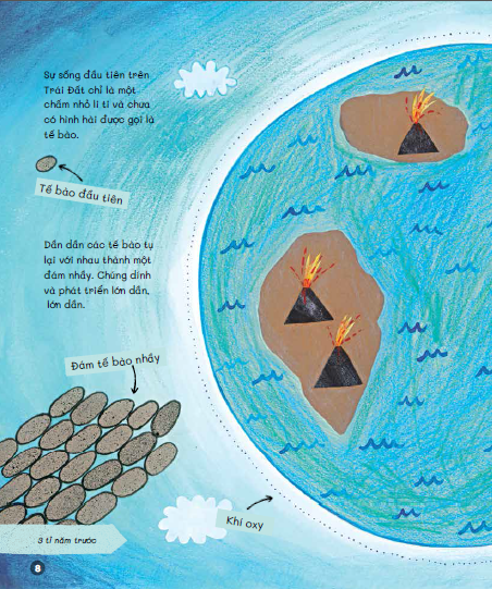 Cuốn sách đưa độc giả nhỏ tuổi trở lại giai đoạn sơ khai của hành tinh, để cùng chứng kiến thời điểm kỳ diệu khi những tế bào đầu tiên xuất hiện dưới đáy đại dương, rồi dần tiến hoá thành muôn loài, từ khủng long đến linh trưởng và cuối cùng là con người.