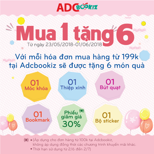 Chào mừng Quốc tế thiếu nhi 1/6, ADCBookiz dành tặng các bé cực nhiều phần quà thú vị. Khi mua hàng tại ADCBookiz với hóa đơn chỉ từ 199.000đ, quý khách hàng sẽ được tặng ngay bộ 6 món quà. Cùng nhanh tay đặt hàng để cùng bé đọc sách hay, rinh quà đẹp thôi nào!